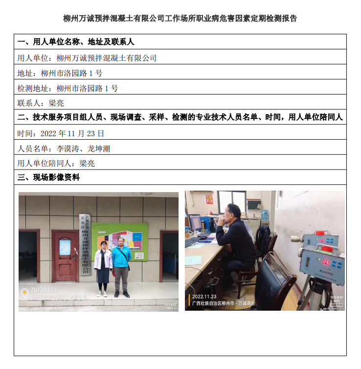 柳州萬誠預(yù)拌混凝土有限公司工作場所職業(yè)病危害因素定期檢測報告