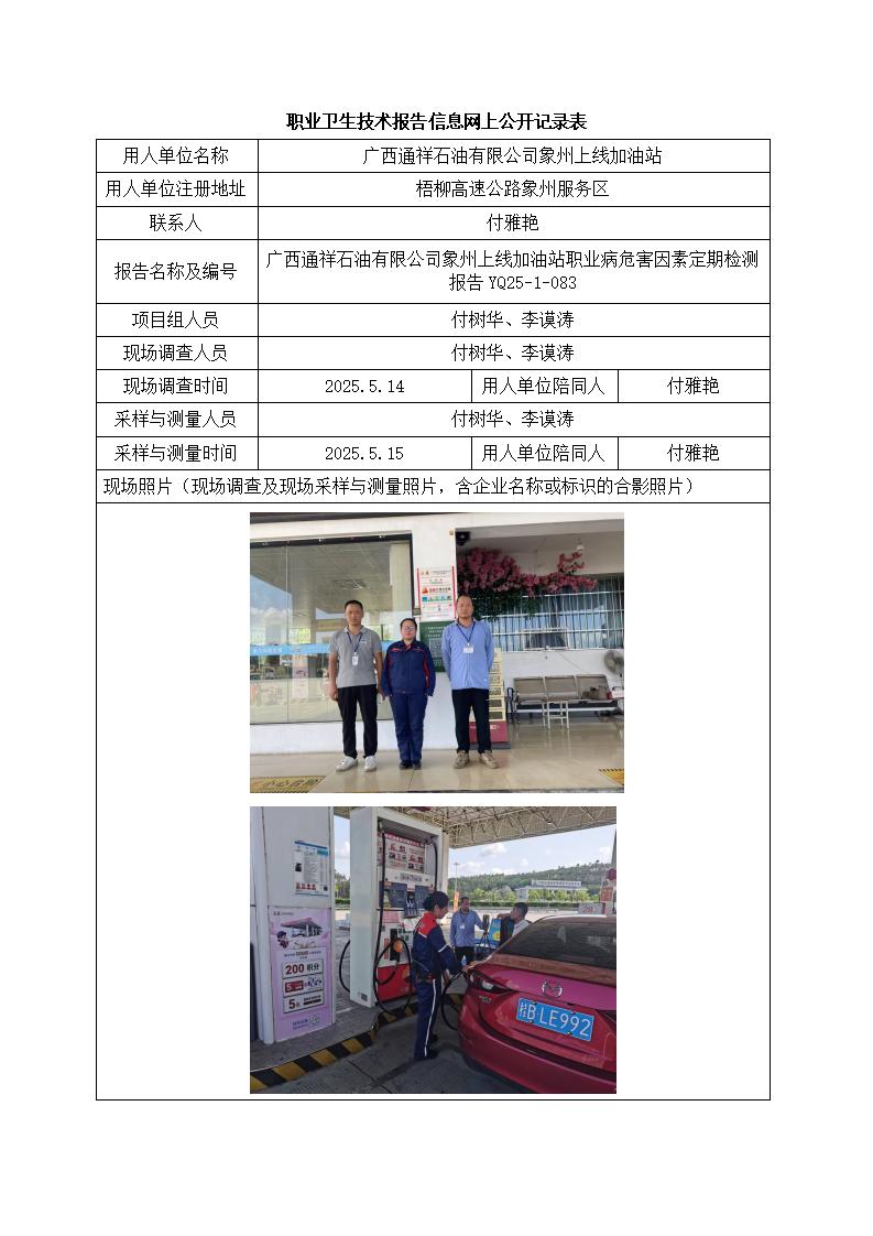 廣西通祥石油有限公司象州上線加油站職業(yè)病危害因素定期檢測報告