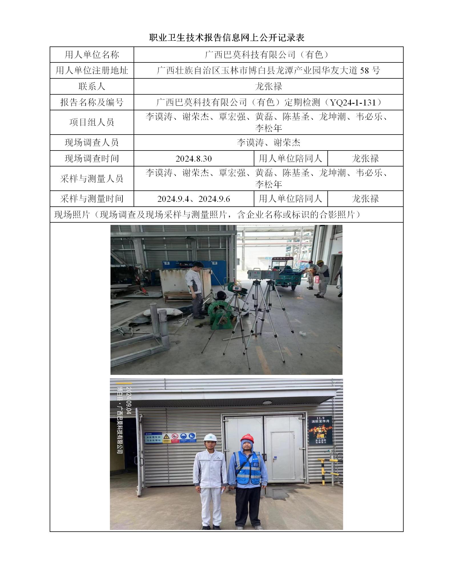 廣西巴莫科技有限公司(有色)工作場(chǎng)所職業(yè)病危害因素定期檢測(cè)報(bào)告