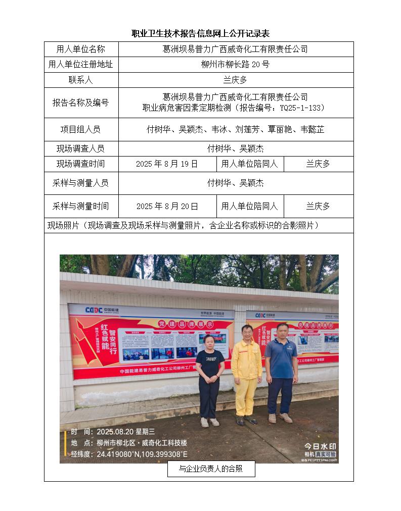 葛洲壩易普力廣西威奇化工有限責(zé)任公司 職業(yè)病危害因素定期檢測報告