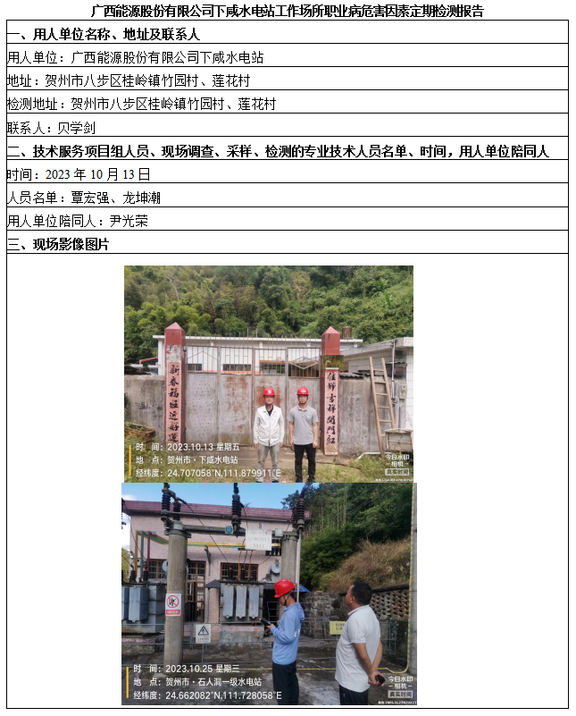 廣西能源股份有限公司下咸水電站工作場(chǎng)所職業(yè)病危害因素定期檢測(cè)報(bào)告