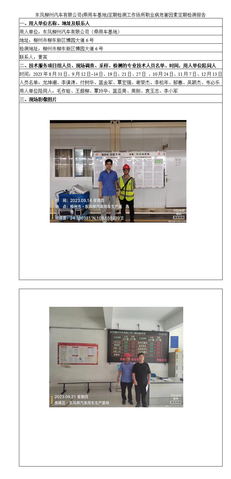 東風柳州汽車有限公司(乘用車基地)定期檢測工作場所職業(yè)病危害因素定期檢測報告