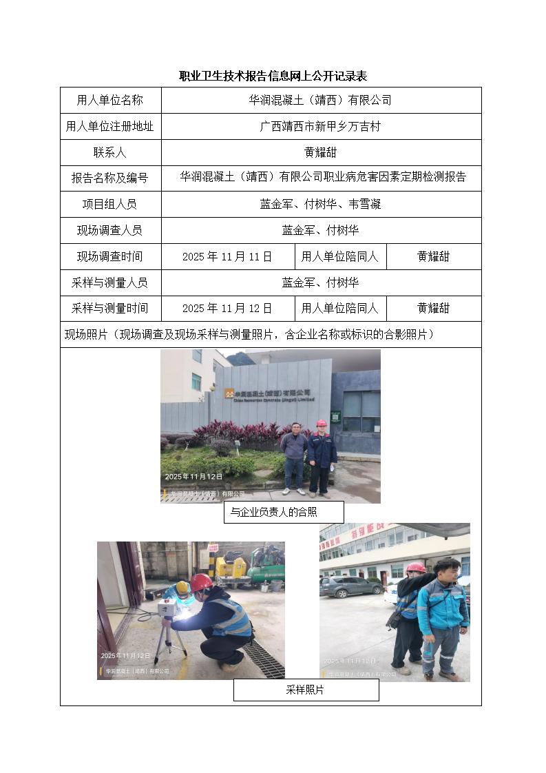 華潤混凝土(靖西)有限公司職業(yè)病危害因素定期檢測報告公開信息