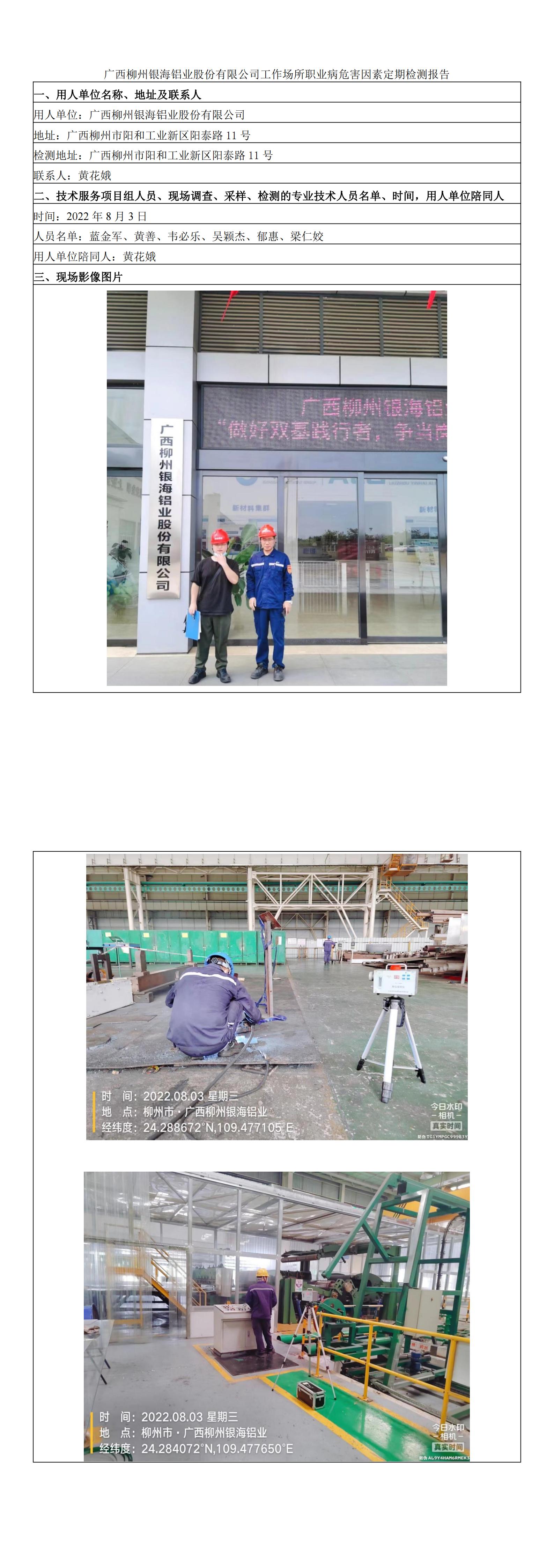 廣西柳州銀海鋁業(yè)股份有限公司工作場所職業(yè)病危害因素定期檢測報告