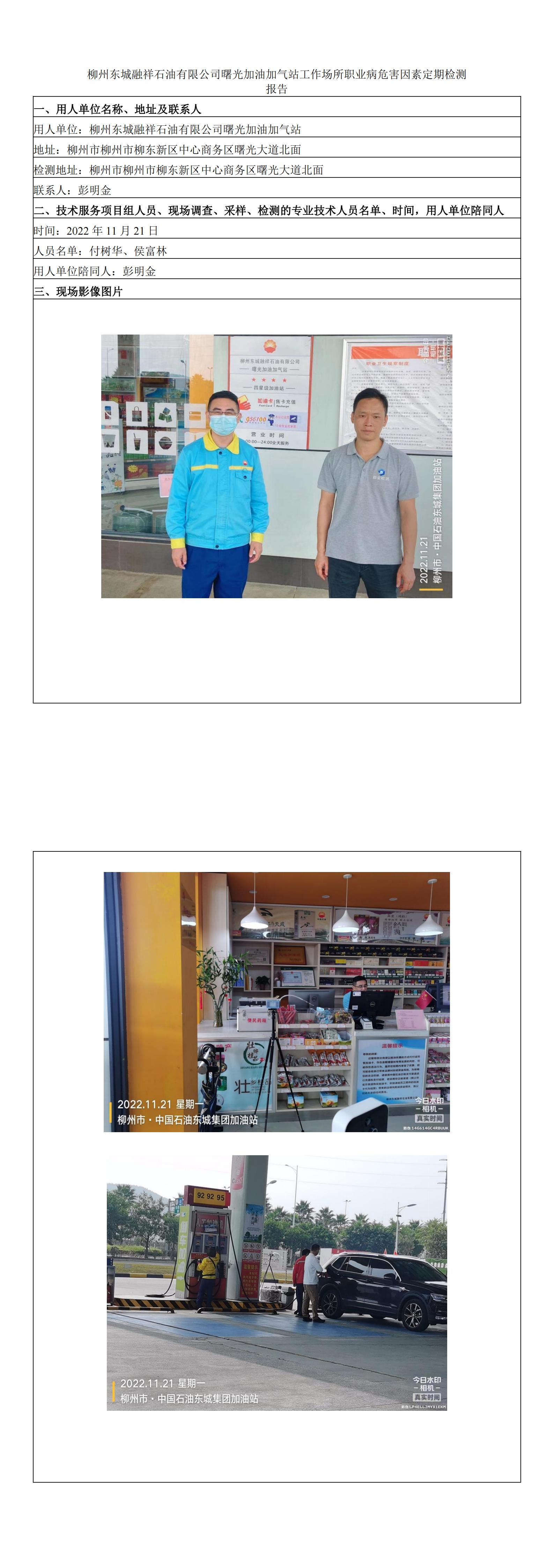 柳州東城融祥石油有限公司曙光加油加氣站工作場(chǎng)所職業(yè)病危害因素定期檢測(cè)報(bào)告