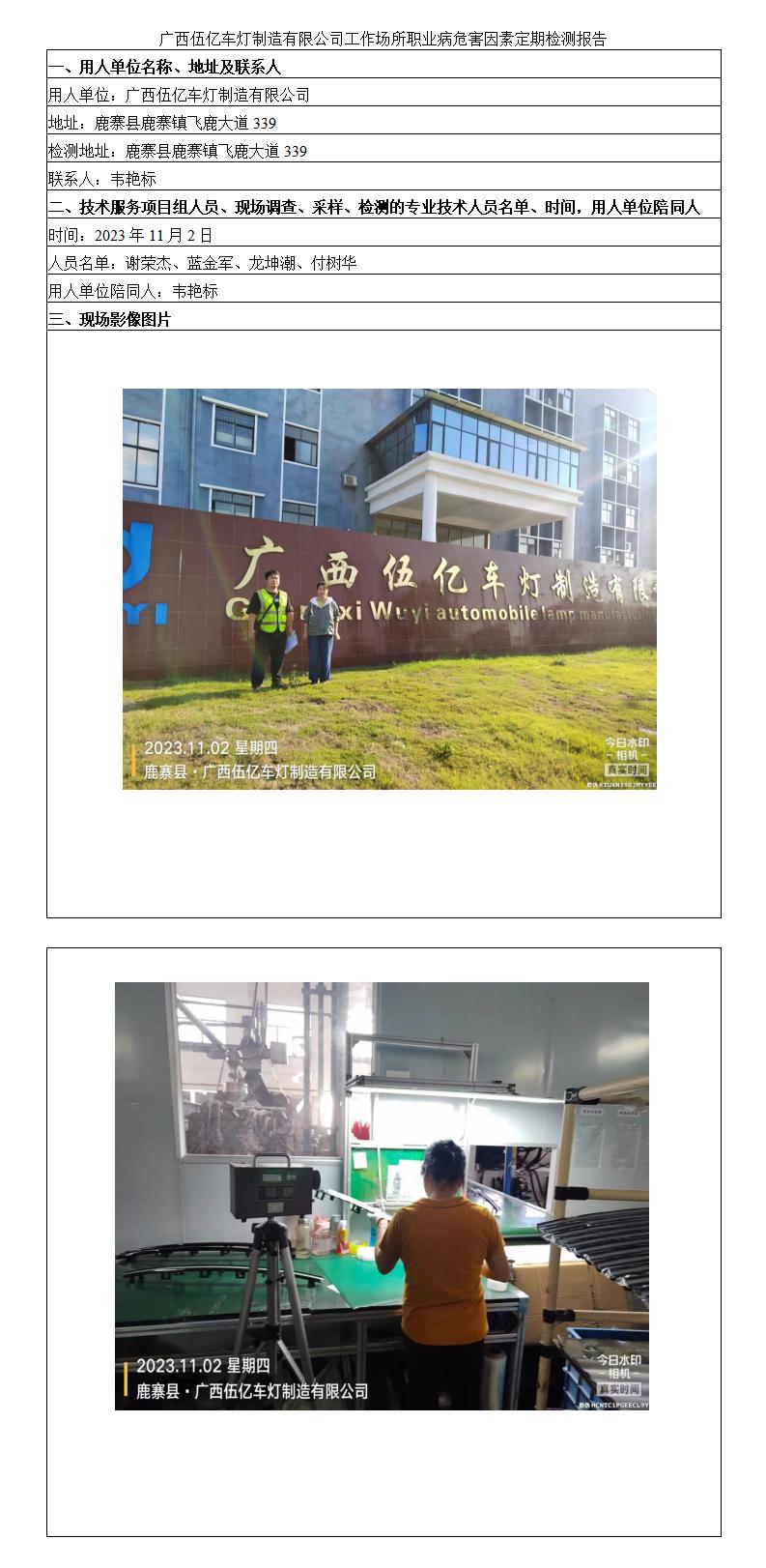 廣西伍億車燈制造有限公司工作場所職業(yè)病危害因素定期檢測報告