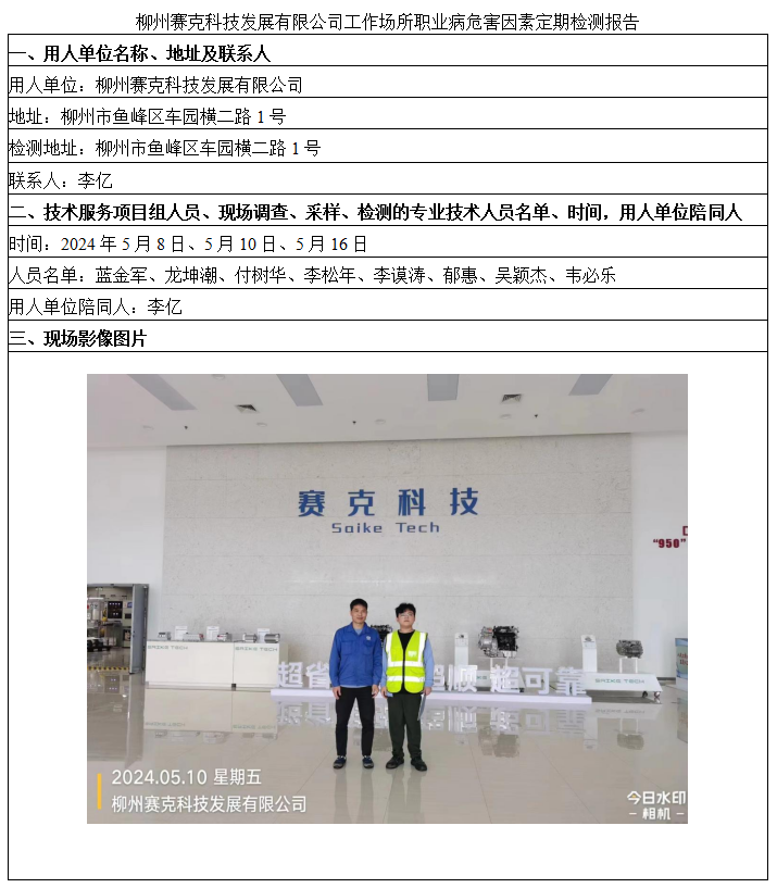 柳州賽克科技發(fā)展有限公司工作場所職業(yè)病危害因素定期檢測報(bào)告