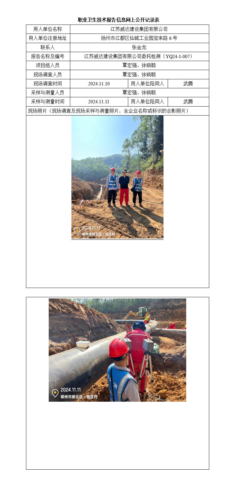 江蘇威達(dá)建設(shè)集團(tuán)有限公司職業(yè)病危害因素委托檢測(cè)報(bào)告