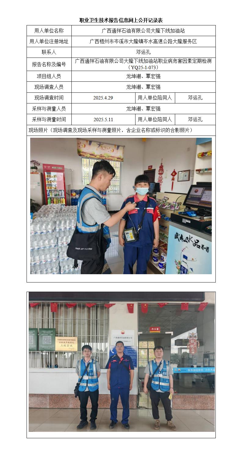 廣西通祥石油有限公司大隆下線加油站職業(yè)病危害因素定期檢測(cè)