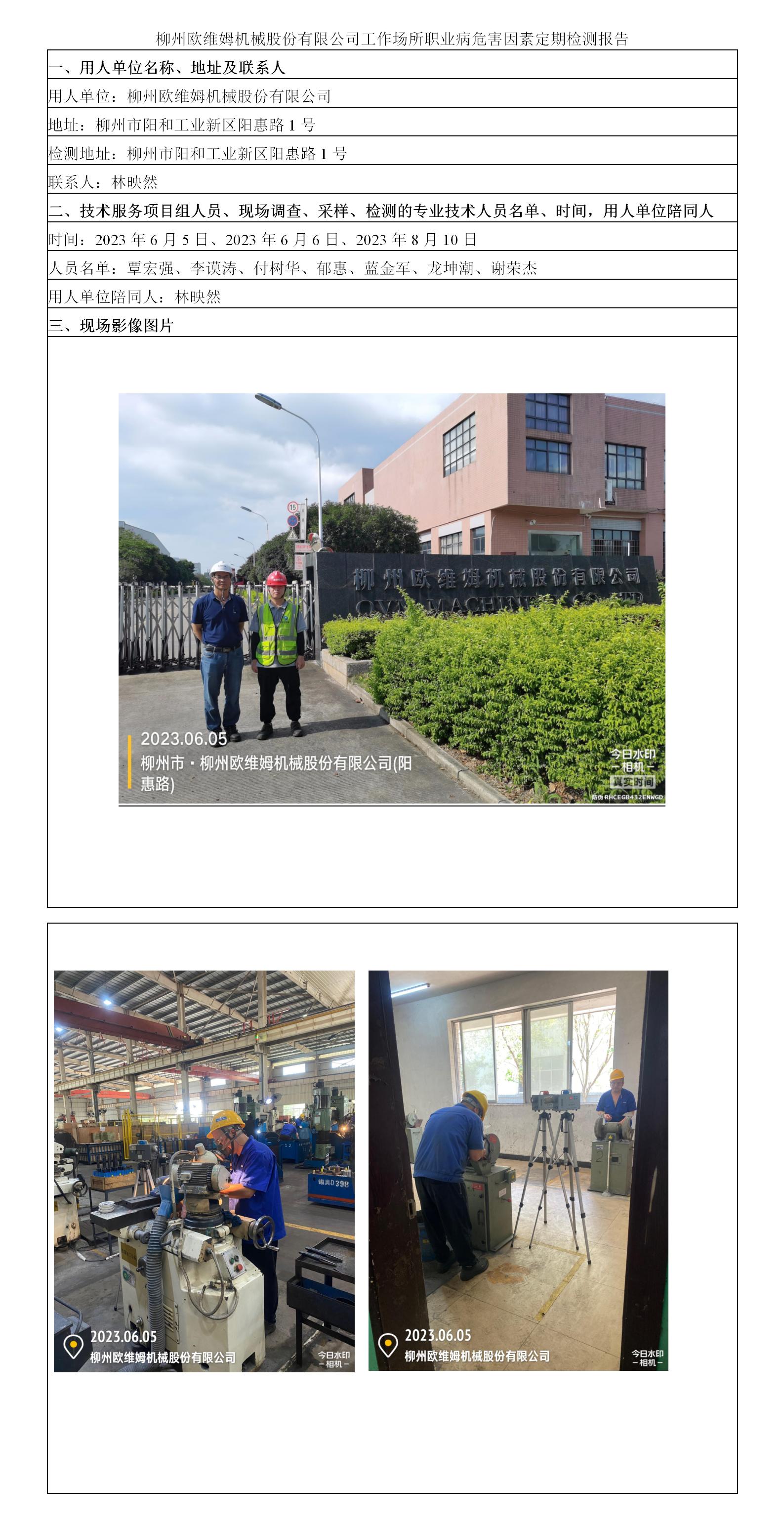 柳州歐維姆機(jī)械股份有限公司工作場所職業(yè)病危害因素定期檢測報告